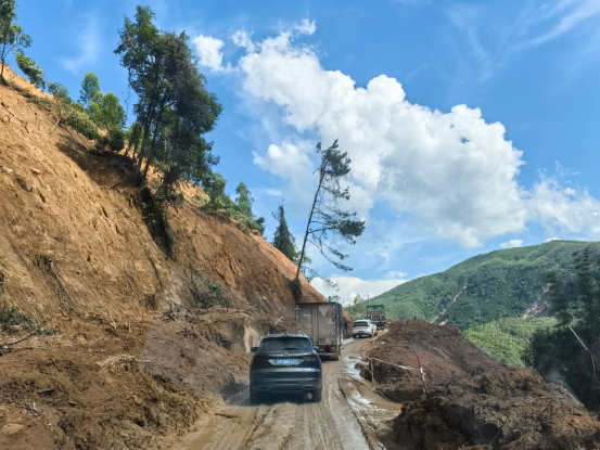 通往灾区的道路满目疮痍,危机重重——倒伏树木横亘路面,厚重淤泥堆积如山,山体滑坡和泥石流的风险时刻威胁着前行的脚步。面对这道道险阻,南粤军旭志愿服务队的退役军人们凭借军人本色与钢铁意志迎难而上。车辆在泥泞中艰难掘进,队员们徒步排障,清理道路。经过一个多小时的艰苦跋涉,这支坚韧的队伍最终突破重重阻碍,顺利抵达此次援助的核心区域——怀集县下帅壮族瑶族乡。